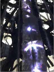 As the poem unfolds, the sculpture gradually glows with golden light. Inspired by kintsugi, the Japanese art of repairing broken pottery with gold, where the cracks are not hidden, this gesture makes visible the invisible grief experienced in widowhood, transforming the broken cage skirt into the wholeness of Widow